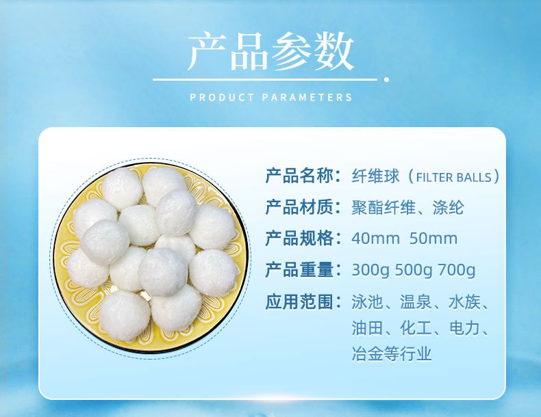 纖維球填料具有彈性效果好、濾速快、空隙大、截污容量大、工作周期長、過濾效果好、水頭損失小等優(yōu)點(diǎn)。適應(yīng)于各種水質(zhì)的過濾和精濾。